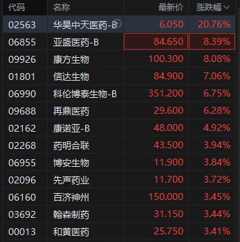 7月3日消息,港股创新药概念股进一步拉升,华昊中天医药-B涨超20%,亚盛医药、康方生物涨超8%日斗配资日斗配资,信达生物涨超7%,再鼎医药、科伦博泰生物-B涨超6%。