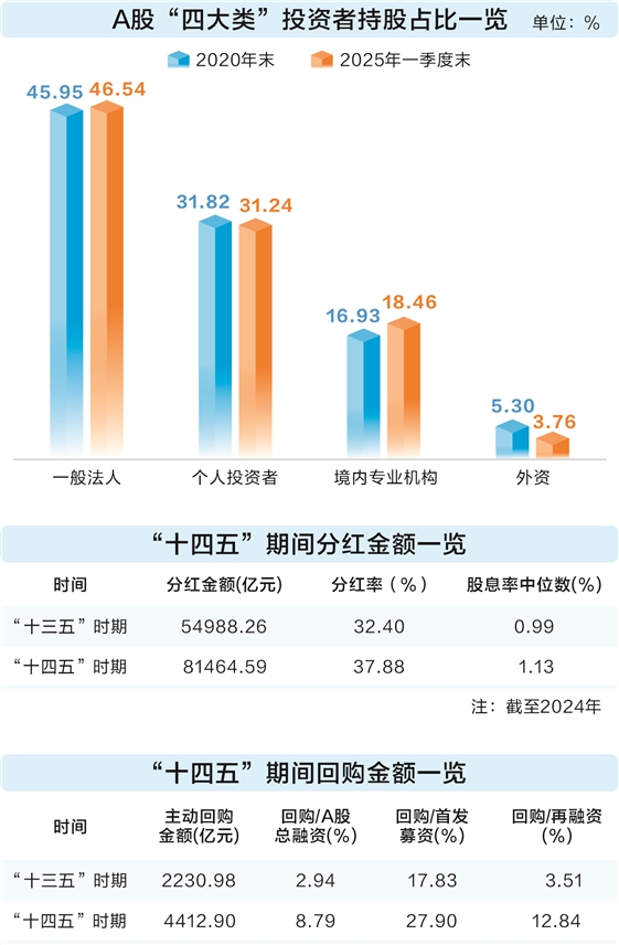 2025年是“十四五”规划的收官之年,中国资本市场全面深化改革成效显著,高质量完成“十四五”规划中的多项目标。“十四五”时期,我国资本市场注册制改革全面落地,构建起多套上市标准,科技型企业融资渠道更加畅通;上市公司用“真金白银”回馈投资者,持续加大分红和回购力度,市值管理意愿提升。
