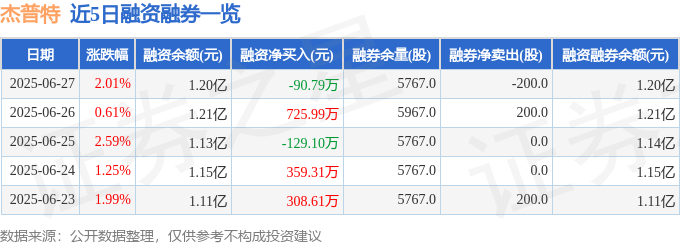 杰普特融资融券信息显示天戈资本,融资方面,当日融资买入1518.03万元,融资偿还1608.82万元,融资净偿还90.79万元。融券方面,融券卖出0.0股,融券偿还200.0股,融券余量5767.0股,融券余额40.73万元。融资融券余额1.2亿元。