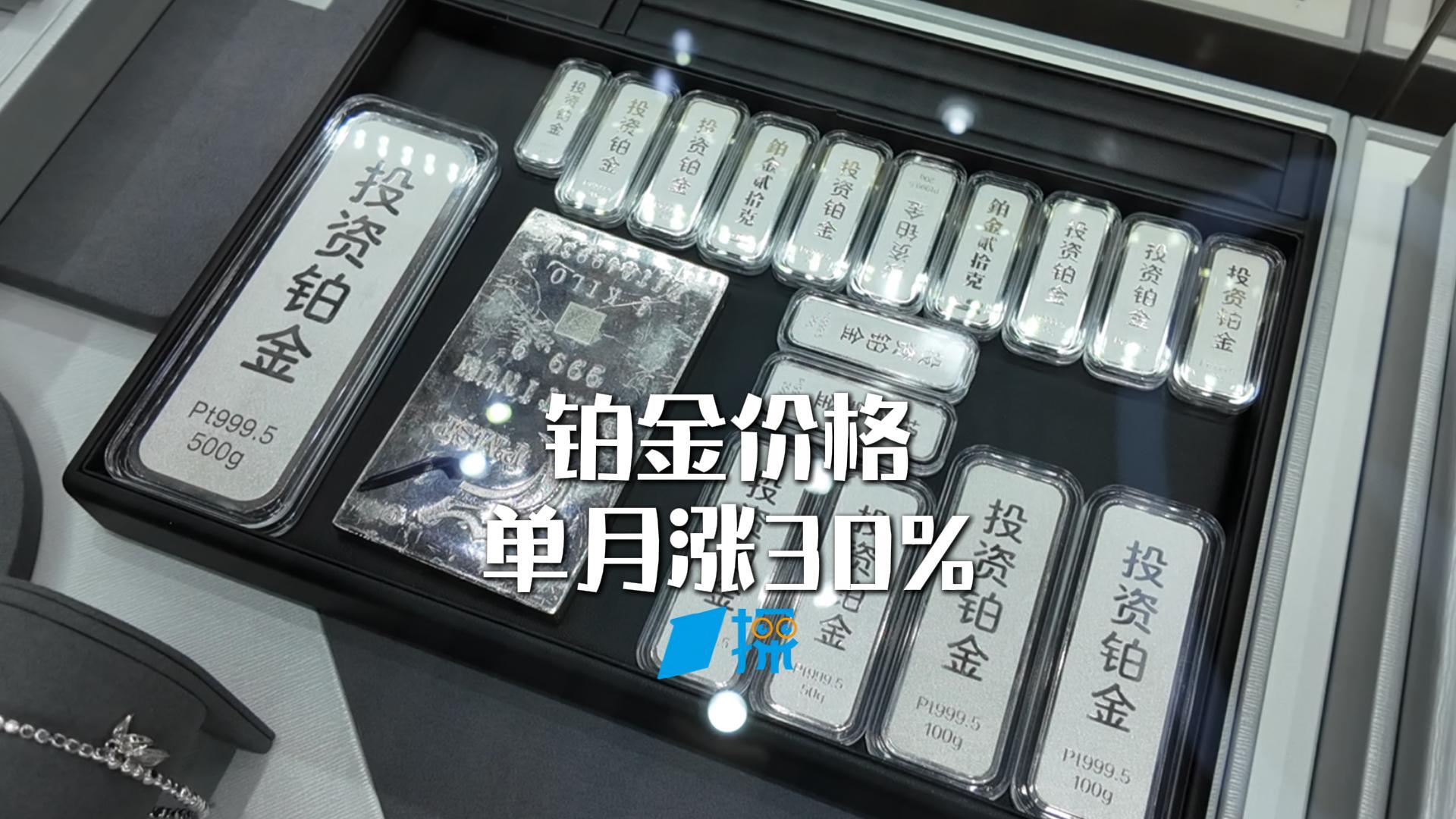 01'13'' 铂金疯涨 单月涨幅近30% 水贝板料紧缺 工厂出货延后 商家:加钱拿货还要靠“抢”|一探铂金价格近期不断上涨,单月上涨超过60元/克,涨幅接近30%。第一财经记者近日实地探访了深圳水贝贵金属交易市场,从商家处了解到,目前水贝市场的铂金板料十分紧缺,拿货需要支付每克10元左右的溢价。